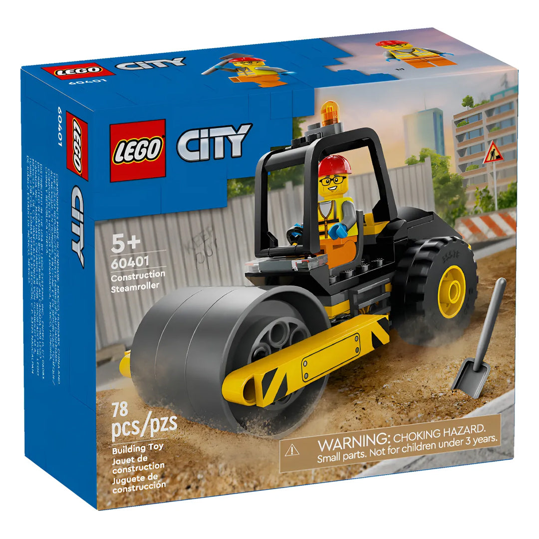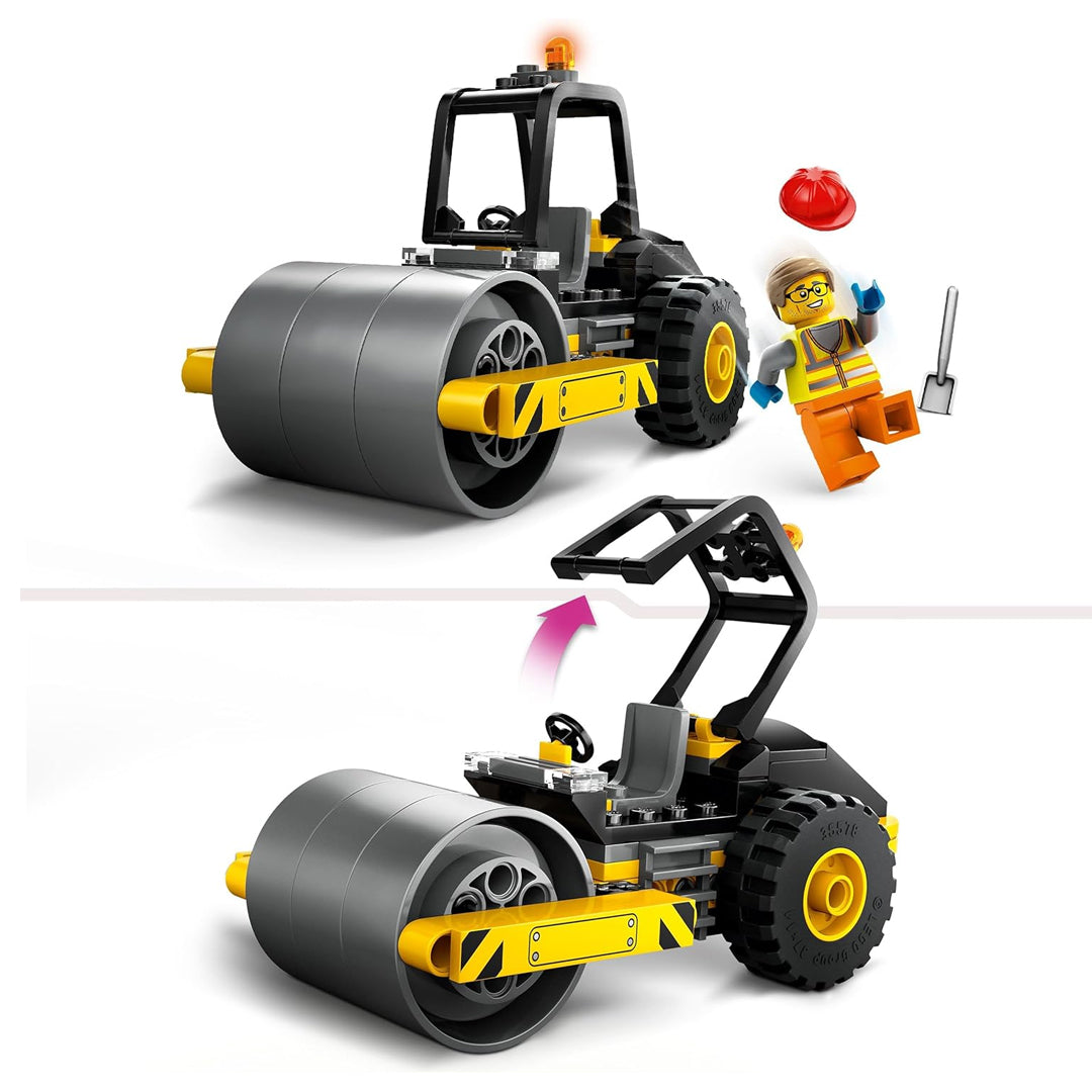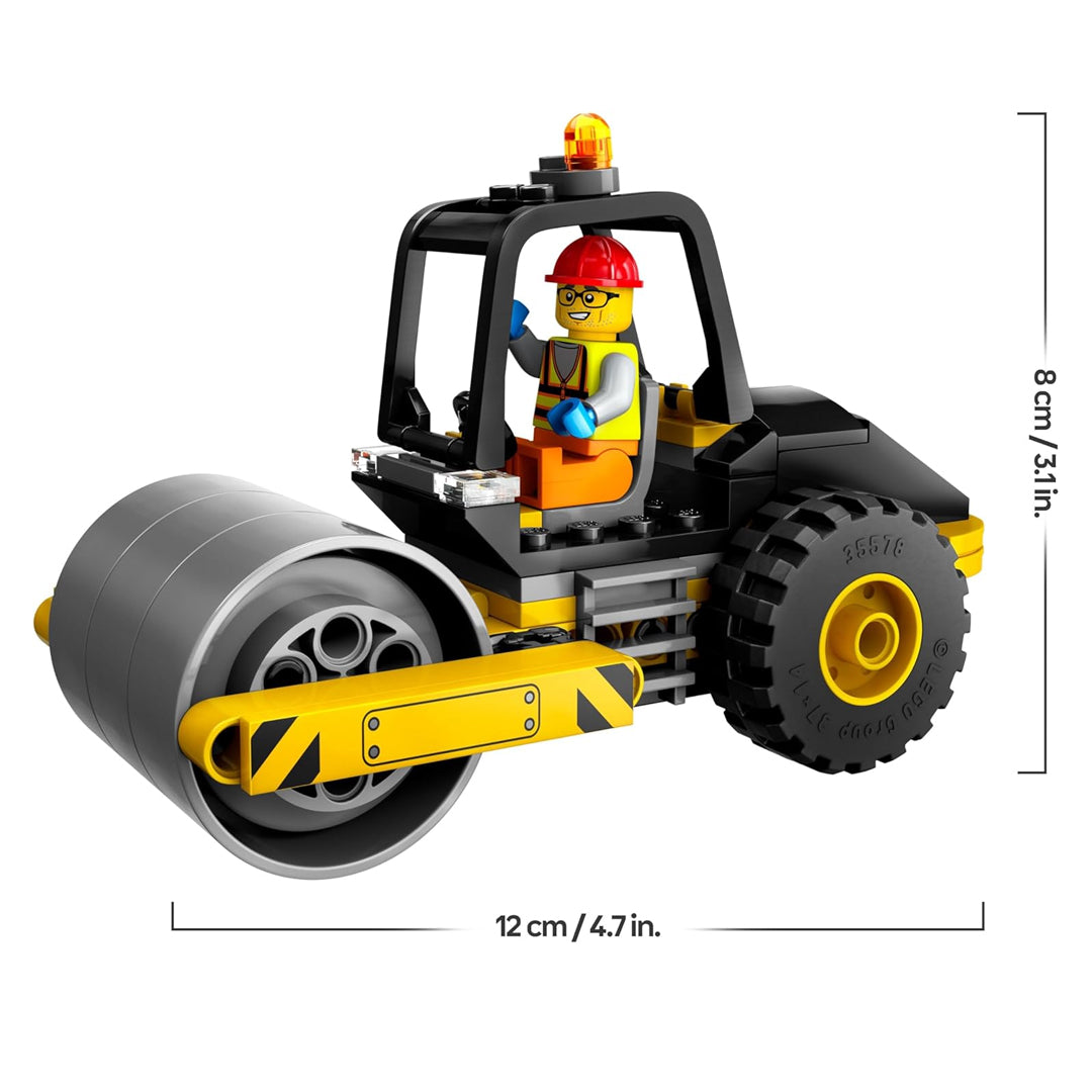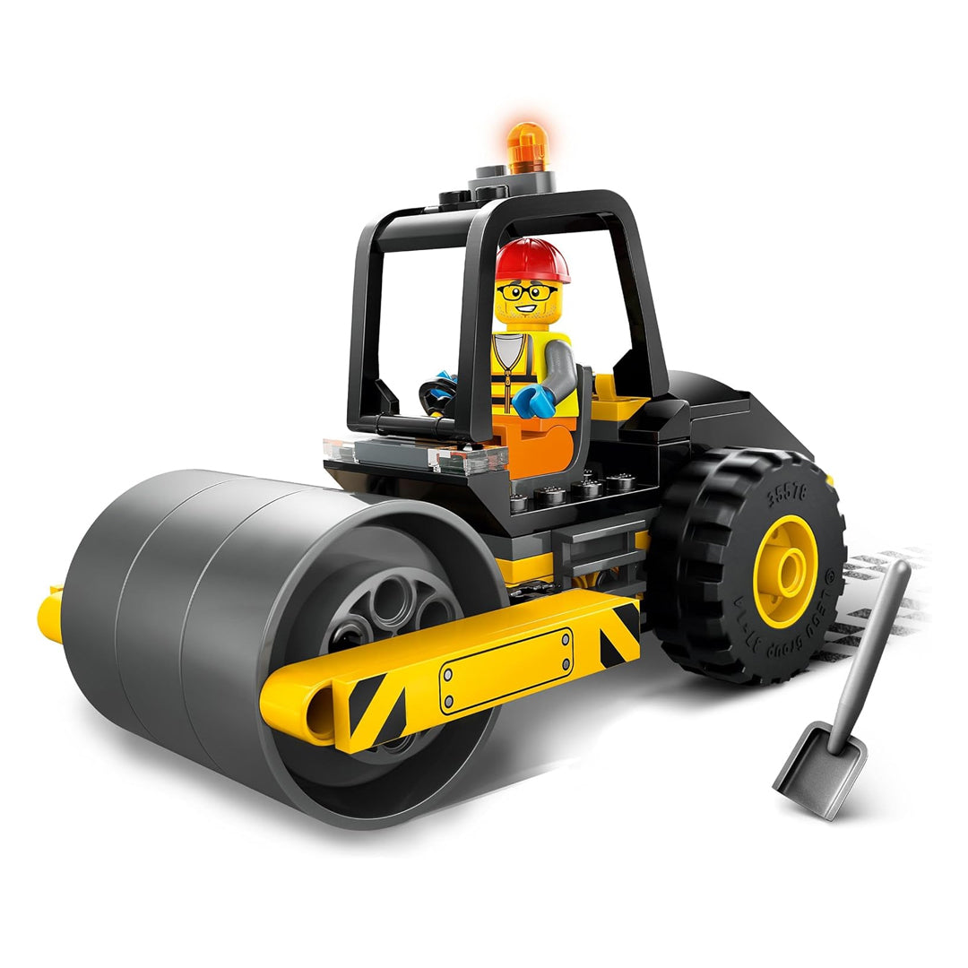 Con sus gruesos neumáticos y su llamativo rodillo, la Apisonadora es idónea para fans de los camiones de juguete y la maquinaria de obra.