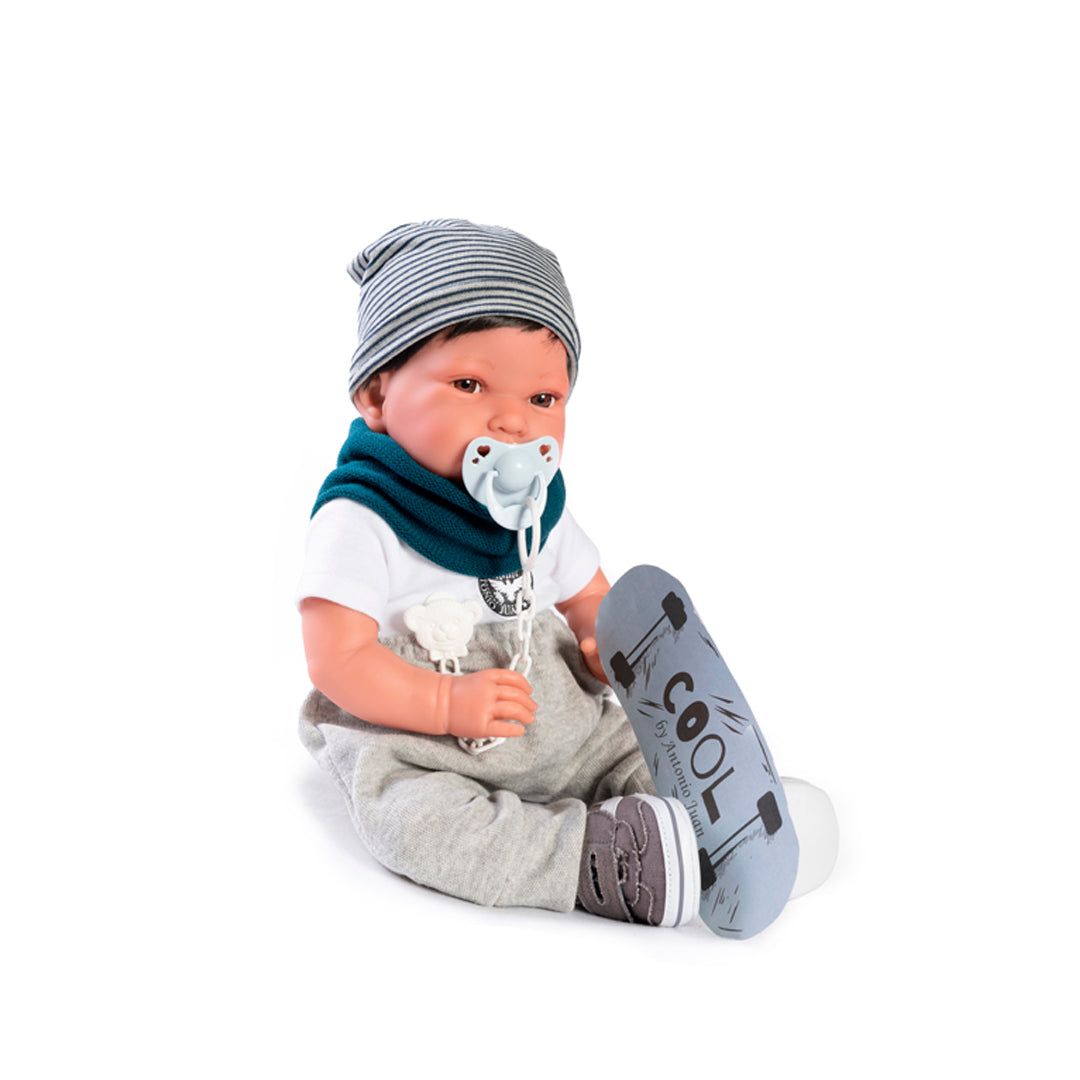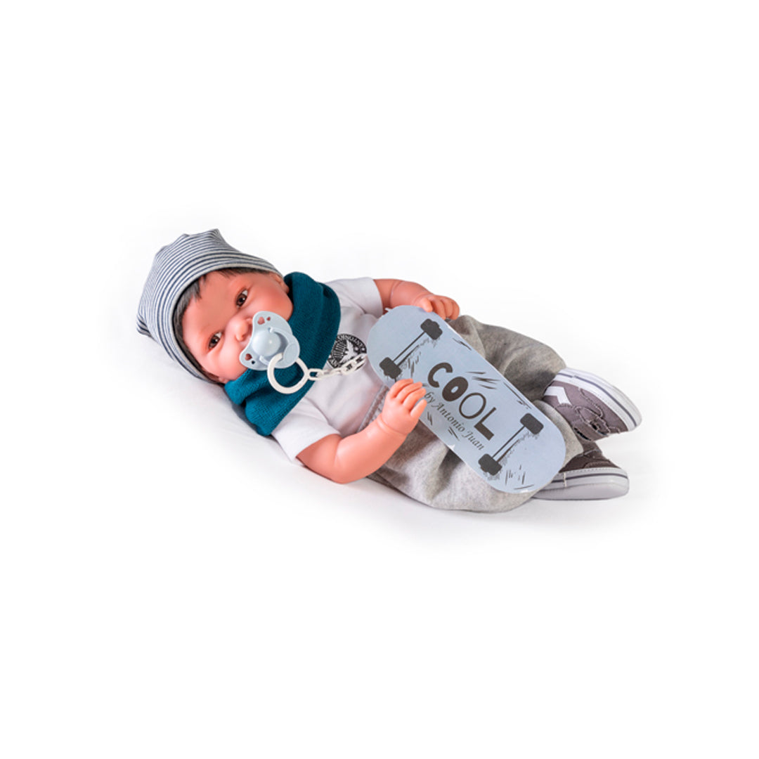 Su cuerpo es de tela blandito para poder abrazarla suavemente y su cara y extremidades de suave vinilo. Puede colocarse en muchas posiciones como un bebé real porque sus extremidades giran, tiene movimiento, lo que le hace tener más realismo.