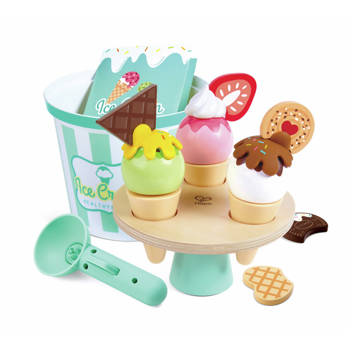 ¡Disfruta de la diversión más dulce con el **Ice Cream Bucket Playset** de Hape! Este colorido y creativo set permite a los niños crear sus propios helados con conos, bolas, mermeladas y coberturas. Ideal para el juego de roles, fomenta la imaginación, las habilidades motoras y la interacción social en cada “pedido”.