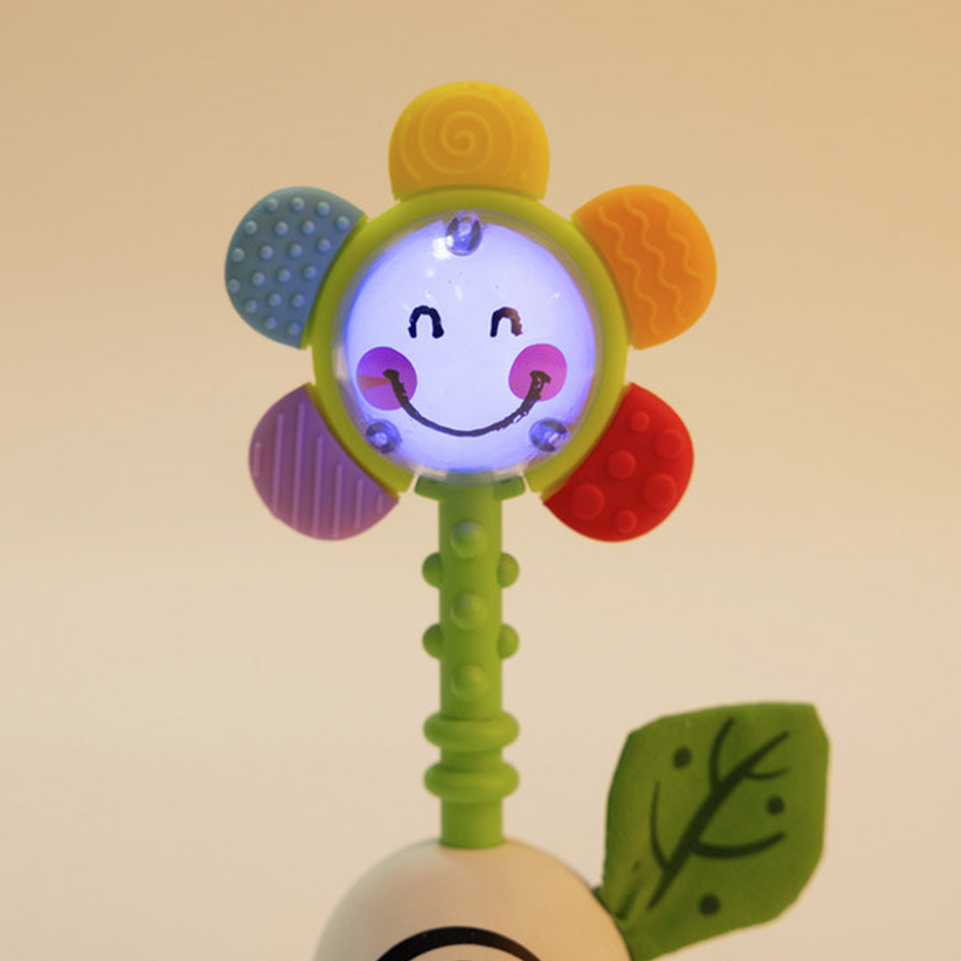 Este encantador sonajero en forma de flor ilumina cada sacudida con una explosión de colores brillantes. Con pétalos de silicona suaves, carita sonriente y un tamaño perfecto para manos pequeñas, es ideal para fomentar la curiosidad, el juego activo y la coordinación desde los primeros meses. ¡Una flor que florece con cada movimiento!