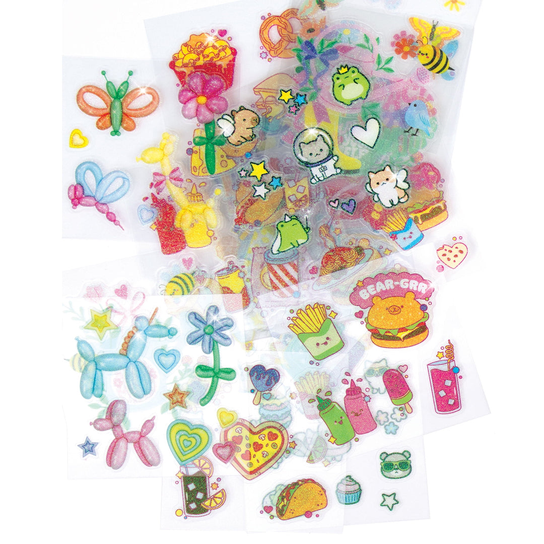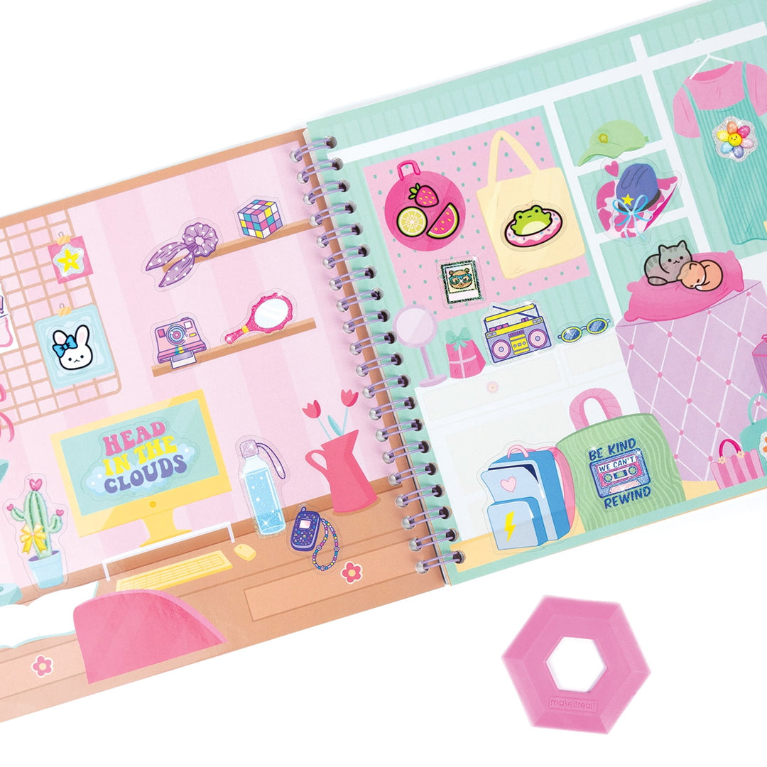 Incluye más de 1400 sticker en 150 hojas, organizadas en cinco adorables temas: amigos animales, atuendo del día, naturaleza encantadora, aperitivos y dulces, y diversión retro.