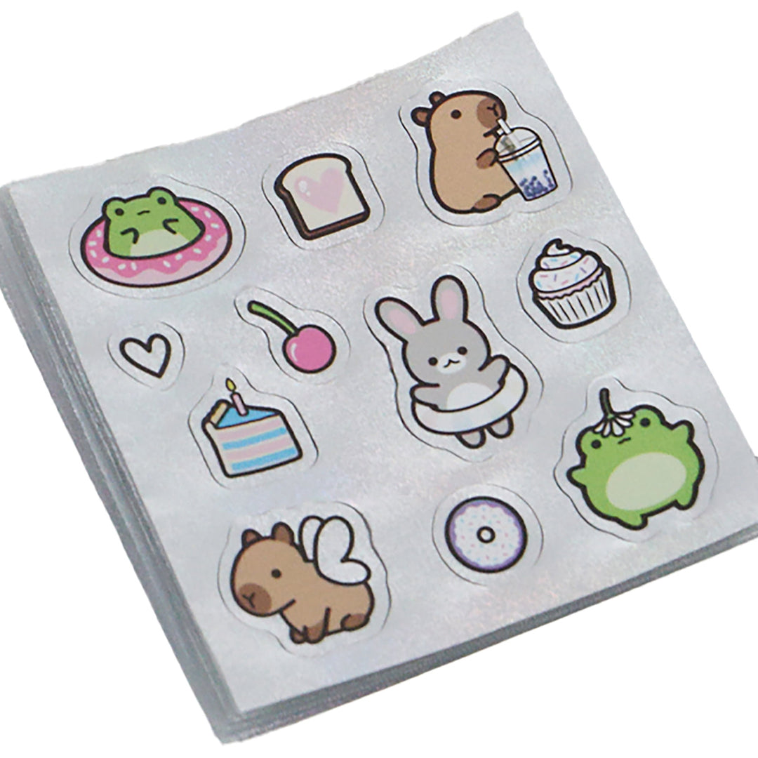 Los stickers cuentan con llamativos efectos holográficos y brillantes, que añaden un toque moderno y brillante a cualquier proyecto o colección.