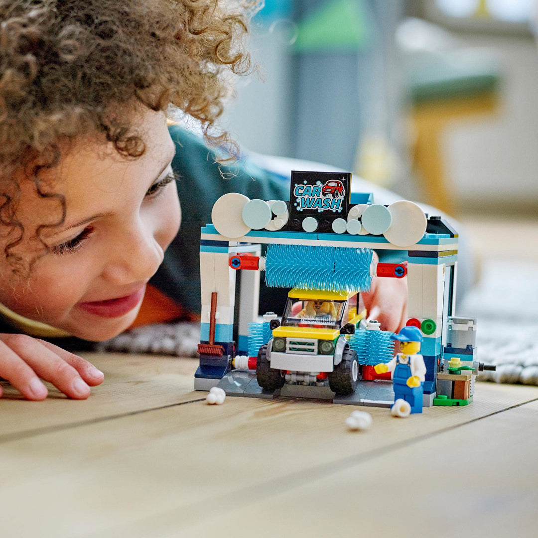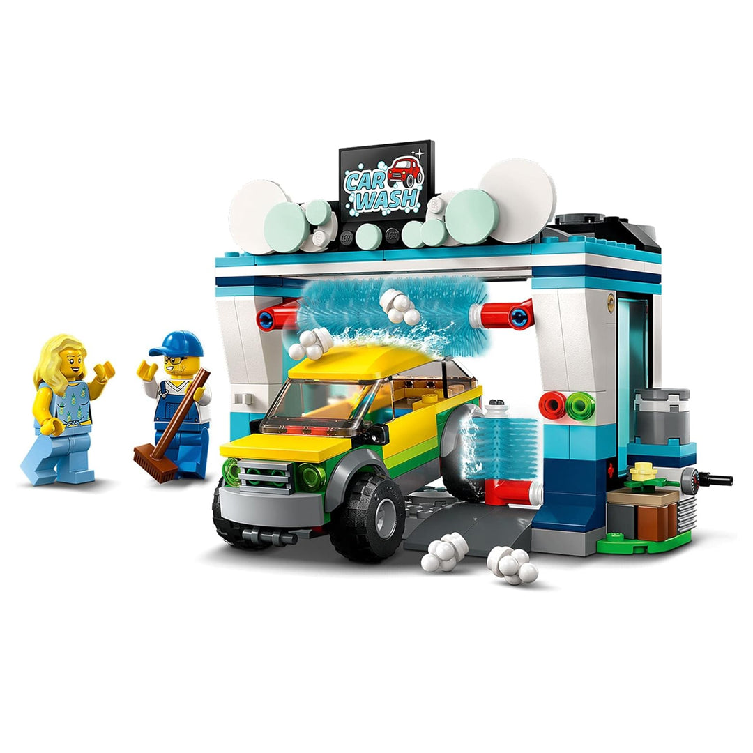 - Lavadero de autos para niños de 6 años o más viene con un coche de juguete, cepillos de lavado giratorios y 2 minifiguras para el juego creativo.