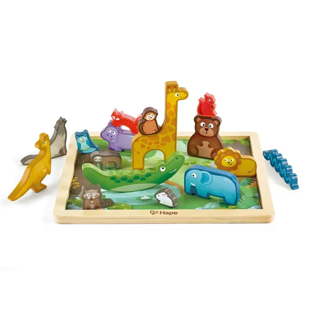 - Múltiples opciones de juego: apila los animales libremente o colócalos en el marco de madera para un juego versátil.