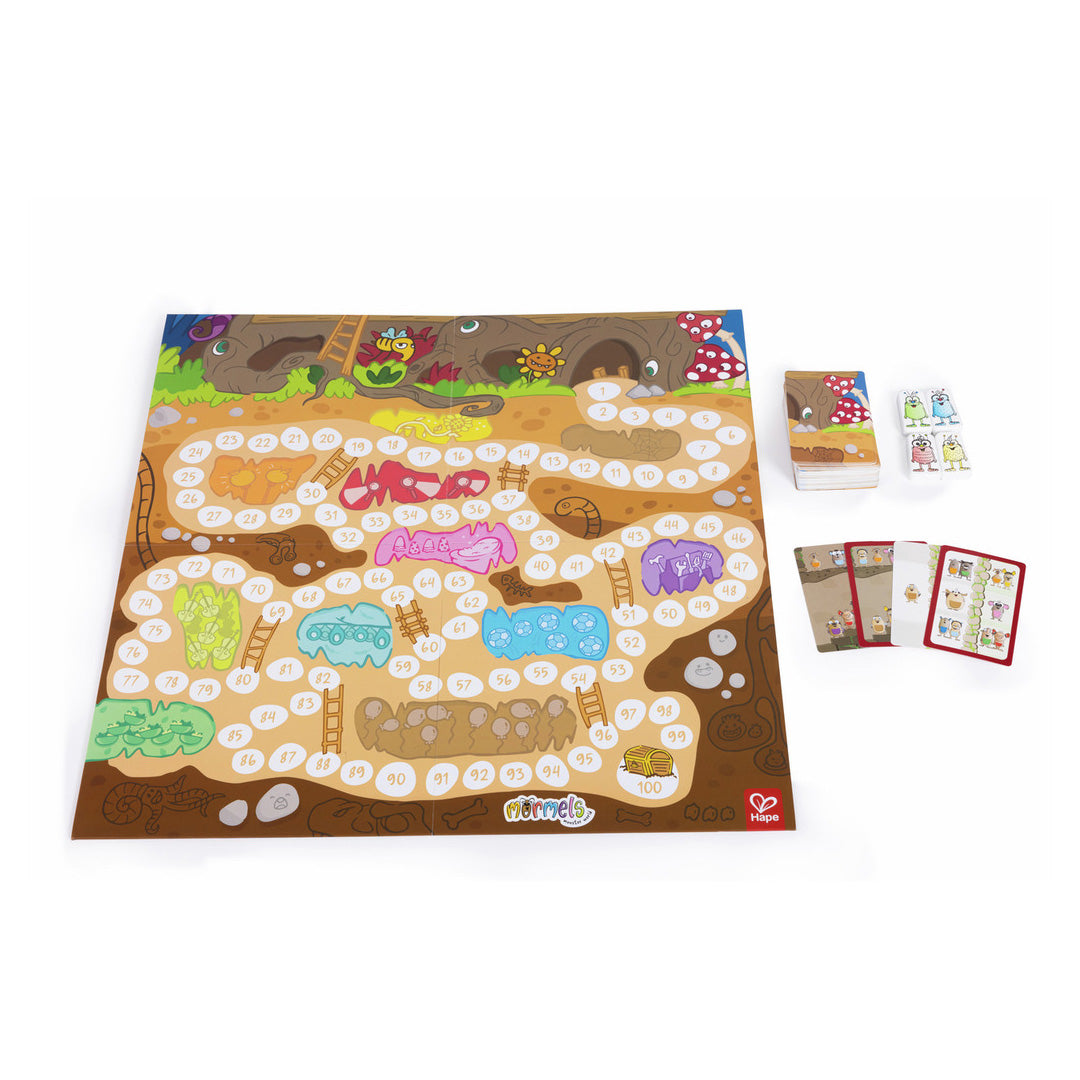 En lugar de dados, el juego se juega con cartas de Mormels. Mediante el conteo, la suma y una planificación inteligente, los niños llegan al cofre del tesoro escondido detrás del número 100.