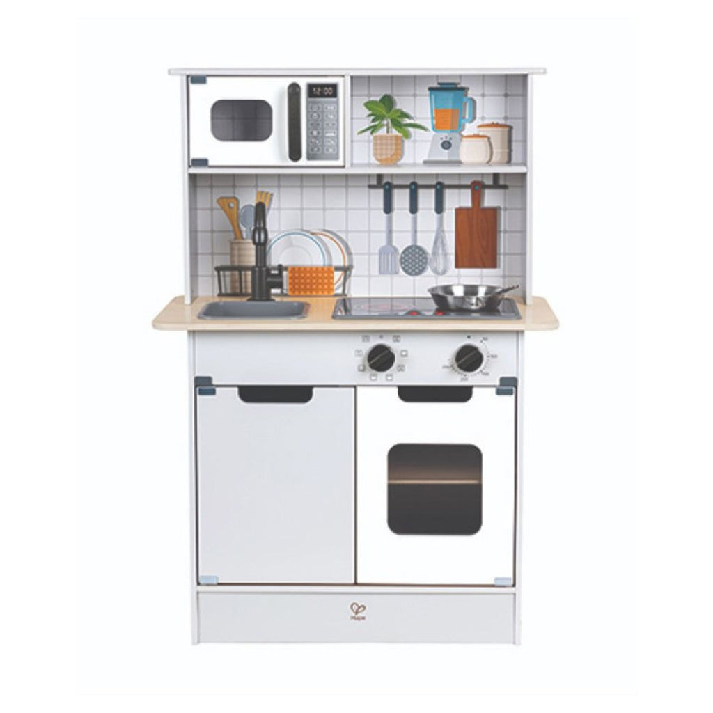 ¡Explora la cocina como un verdadero chef con la **Cocina Moderna de Hape con Luces y Sonidos**! Este set de cocina contemporáneo ofrece una experiencia de juego realista con efectos de luz y sonido que imitan una cocina de verdad. Perfecta para juegos de rol, esta cocina despierta la imaginación y fomenta el juego creativo.